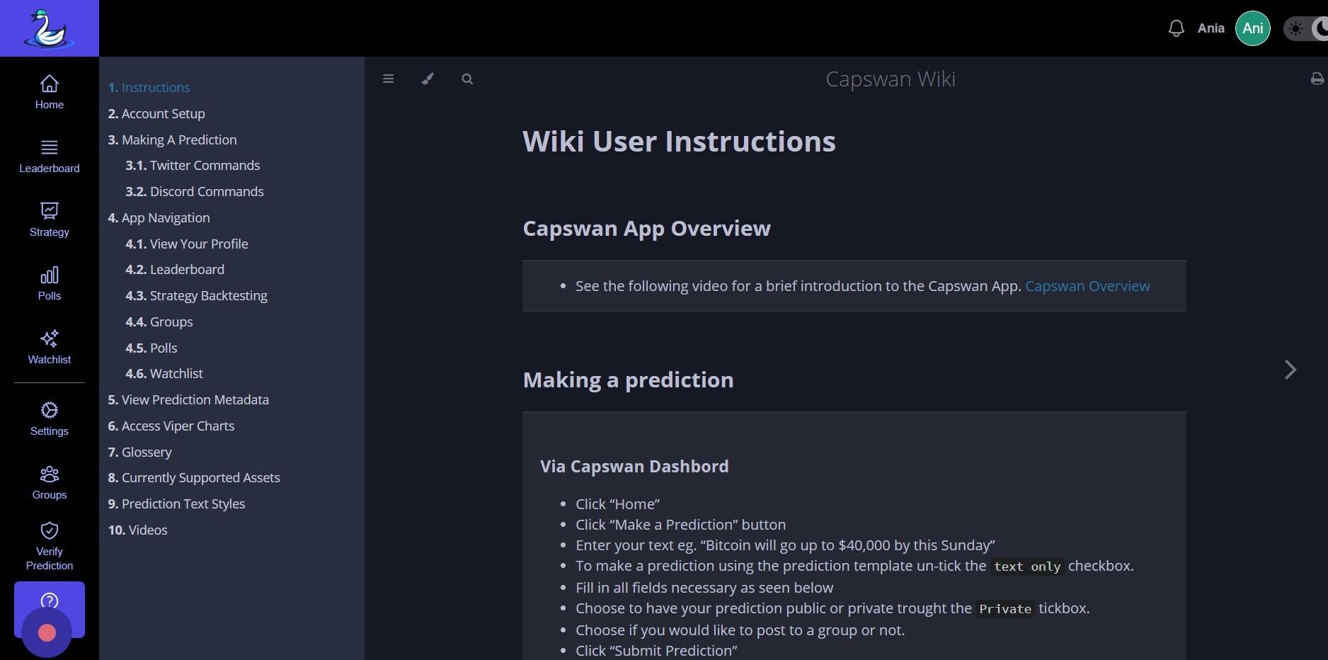10. At the bottom of the taskbar, there is a "Wiki" section you can click to view an extensive guide to using the Capswan app.