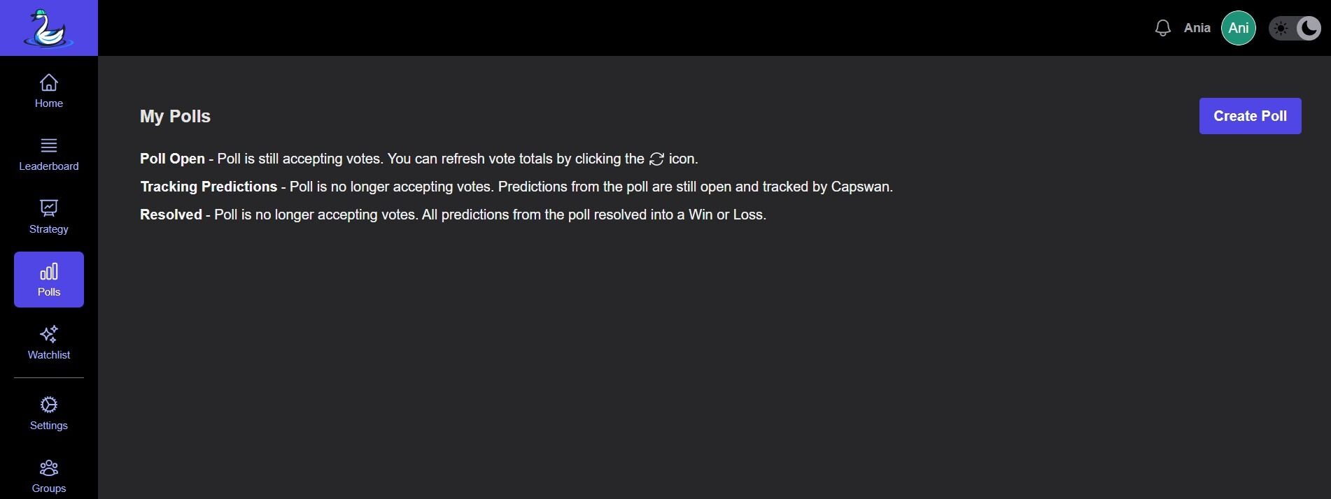 5. To create and view Polls, click the "Polls" tab on the right side of the screen.