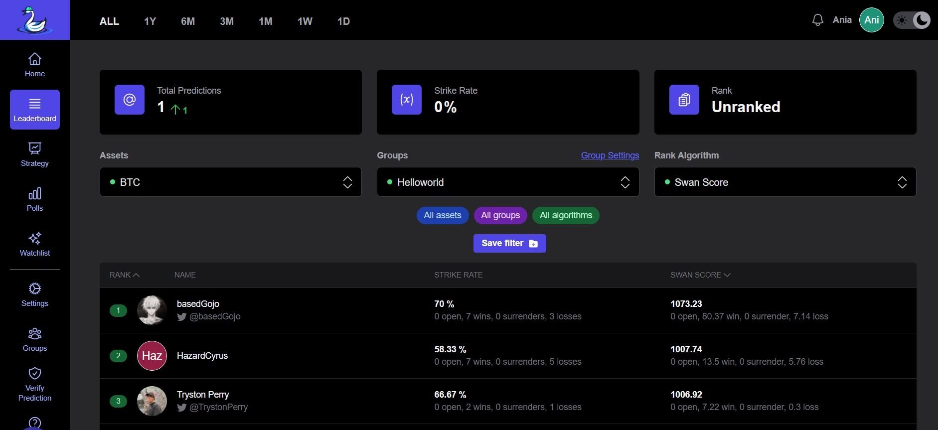4. Right below "Leaderboard" is the "Strategy" option where you can backtest your prediction hypothesis.