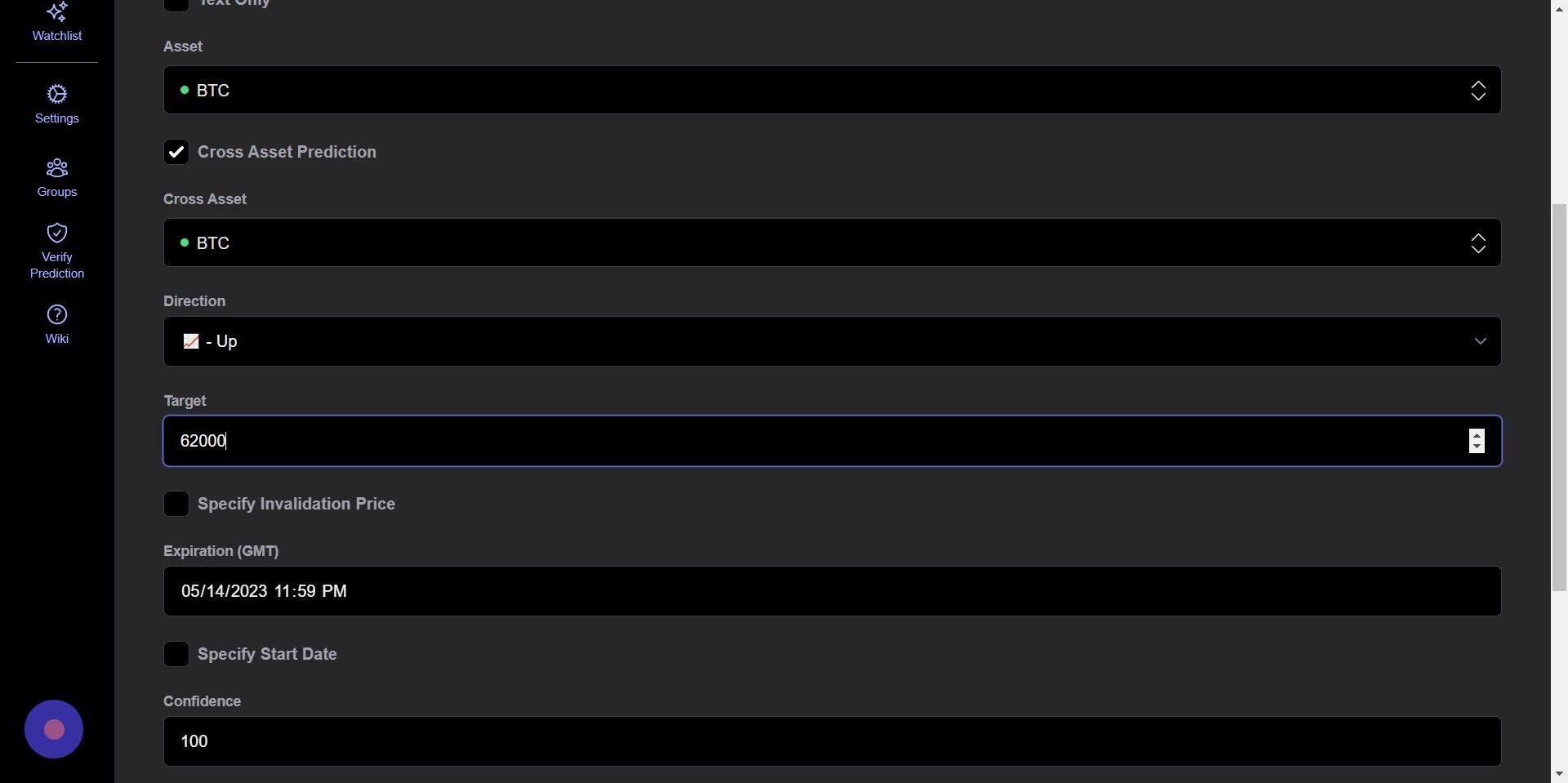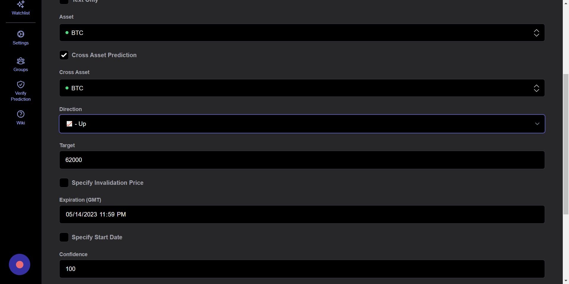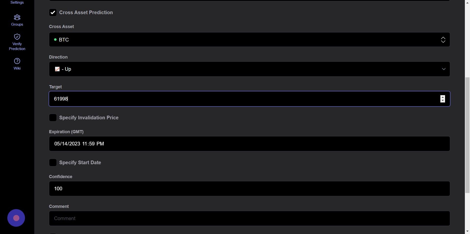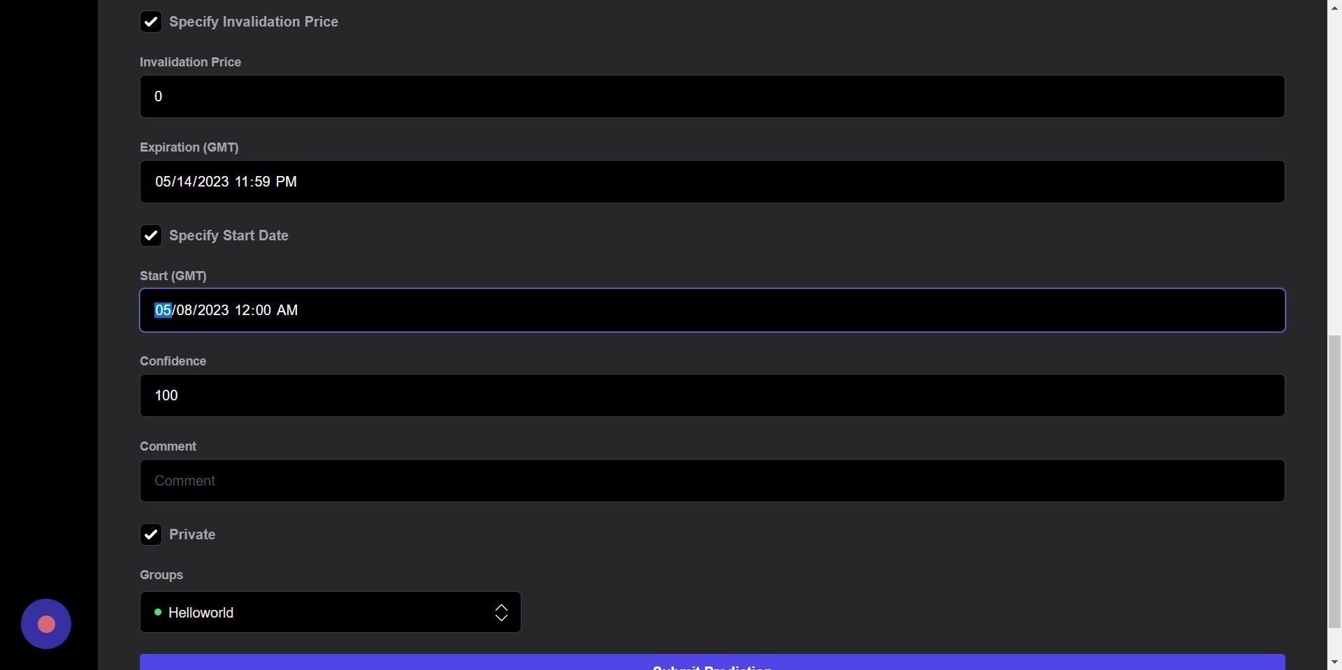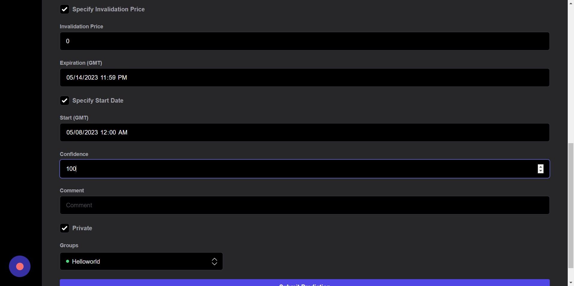 10. To be more specific with the prediction, tick the "Specify Invalidation Price" box.