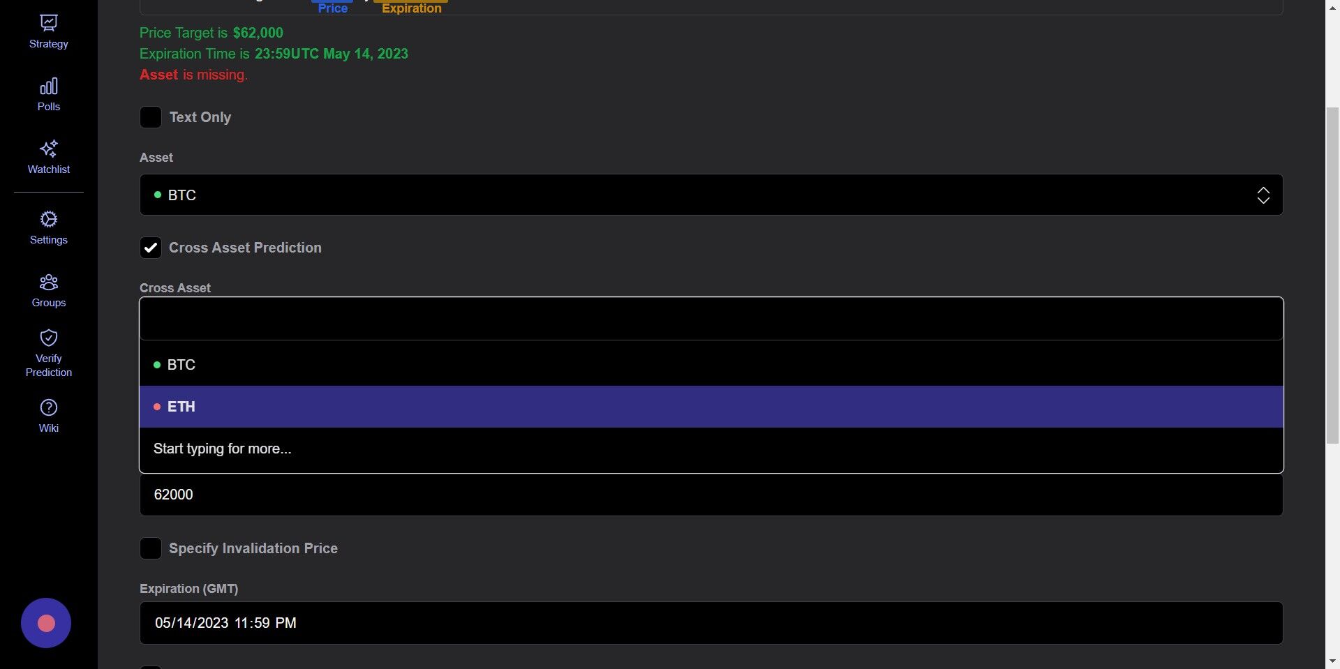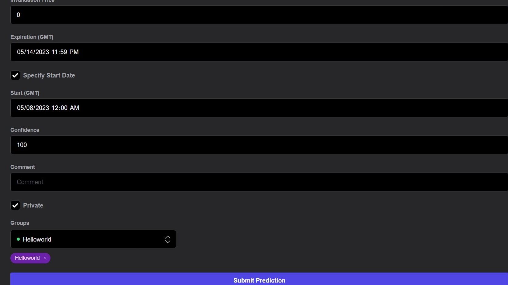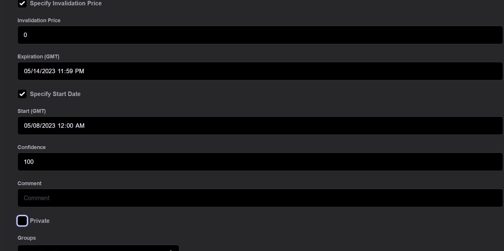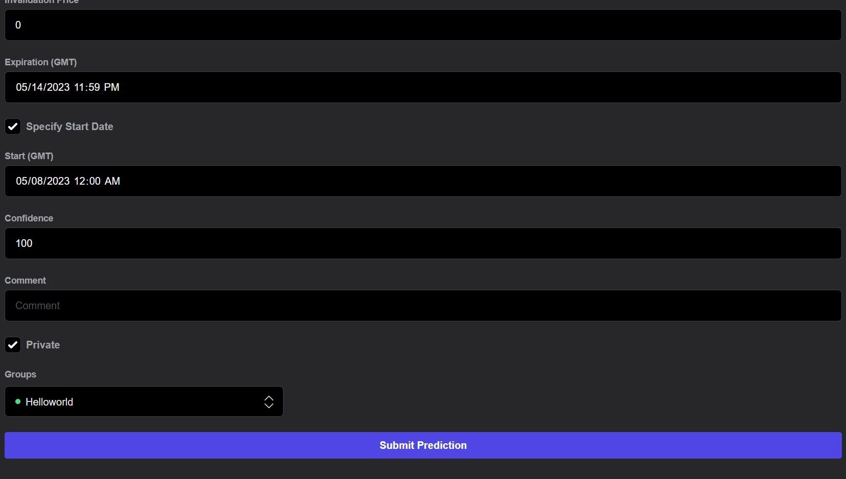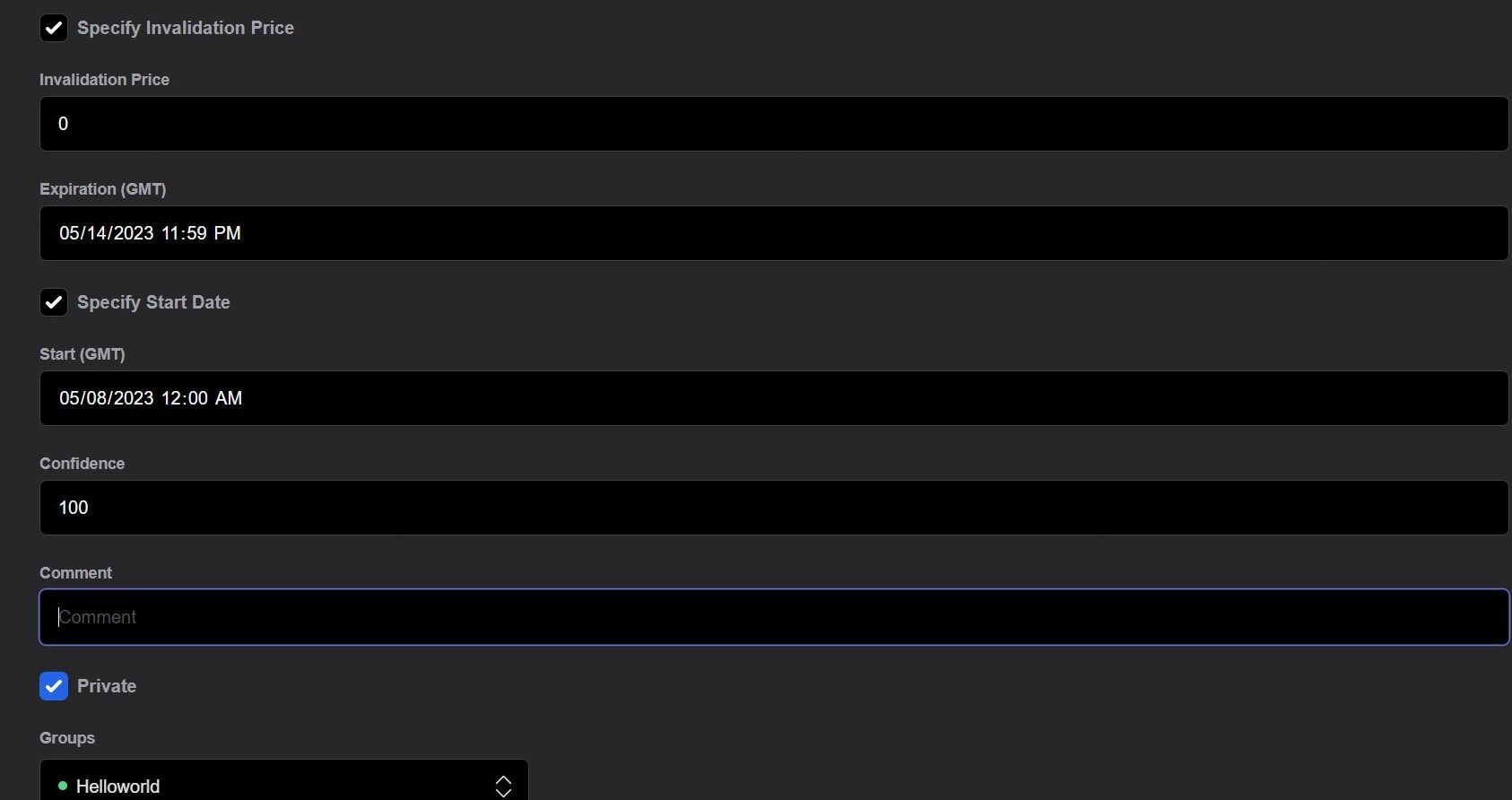 10. To be more specific with the prediction, tick the "Specify Invalidation Price" box.