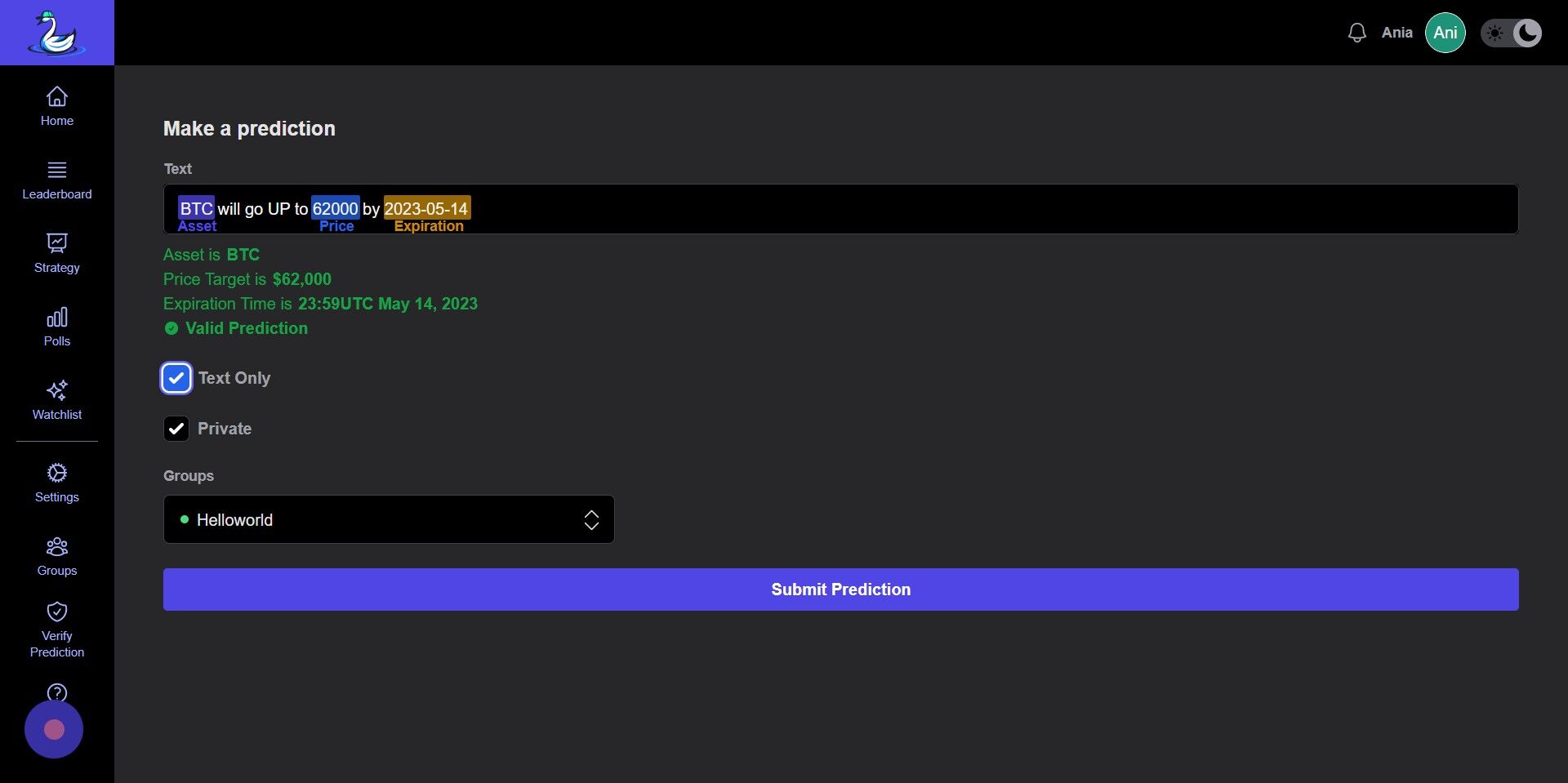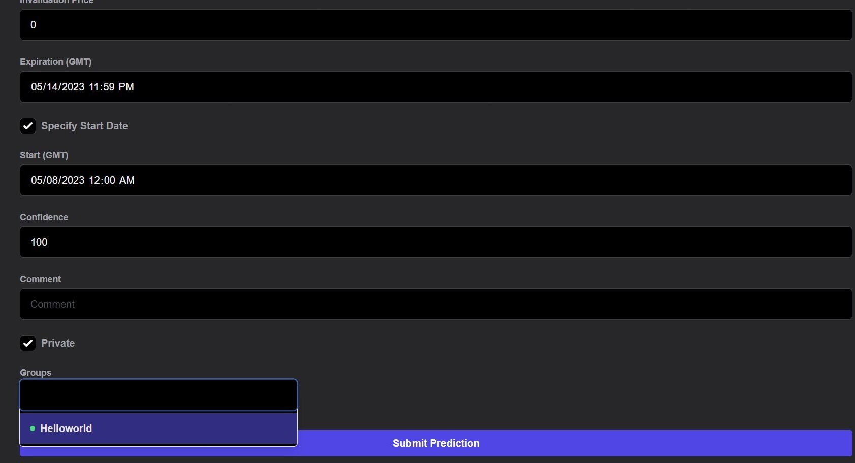 19. You can choose to publish the prediction in any group you are a part of. Simply click the box under "Groups" and select the group you would like.