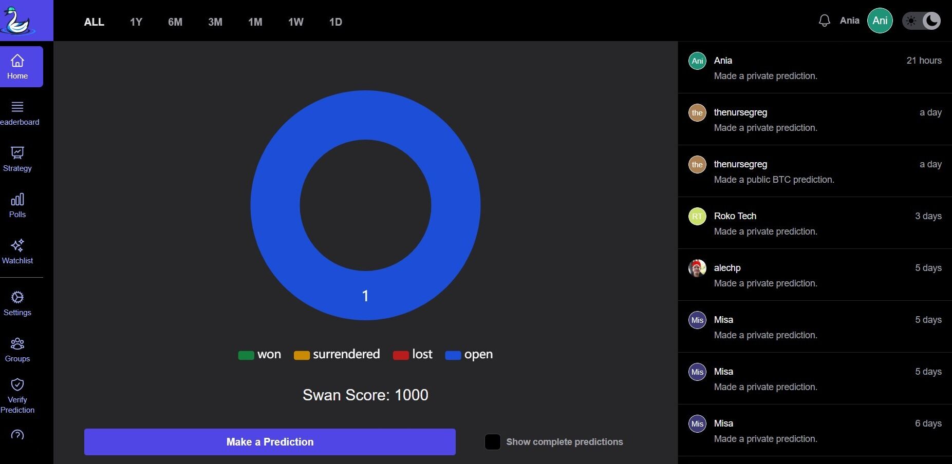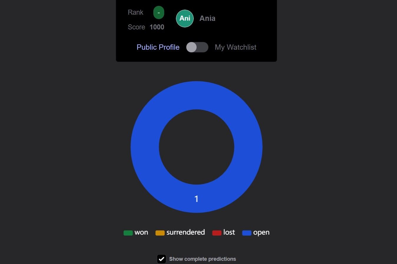 - You can toggle between viewing the predictions in your public profile and watchlist.