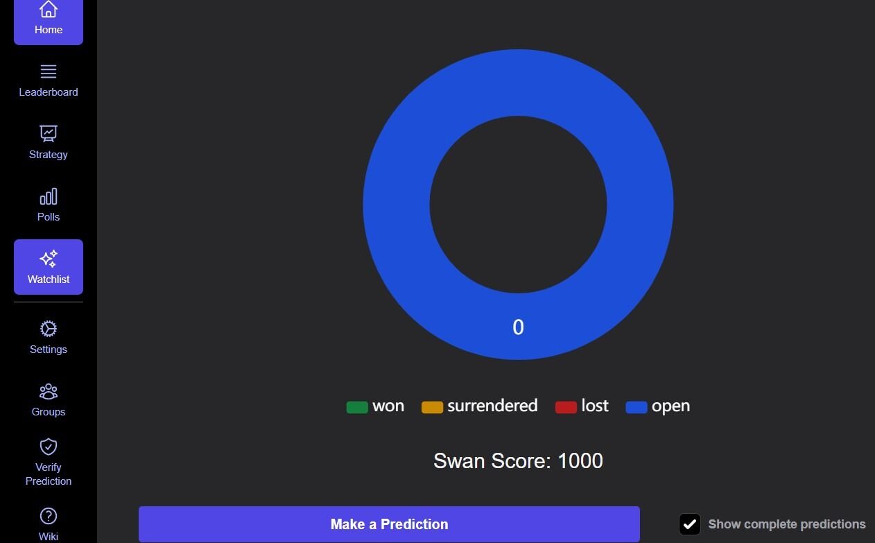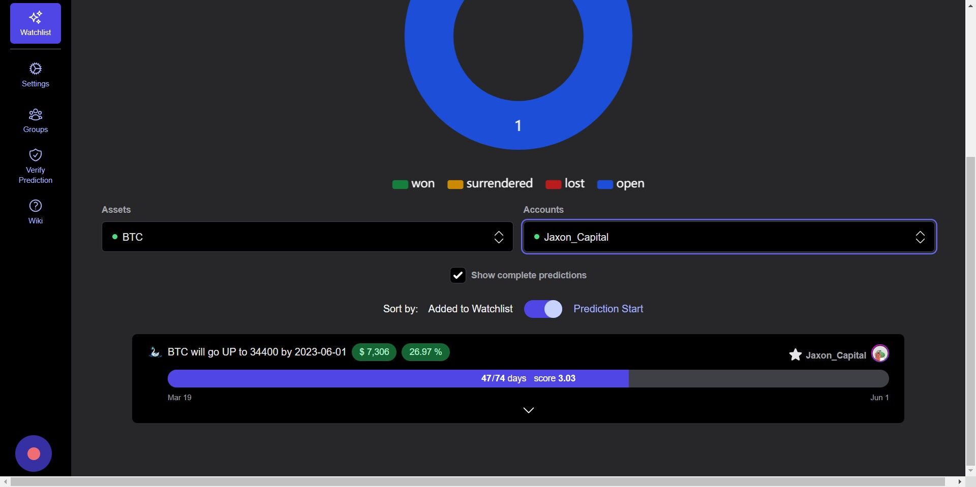 - With the Watchlist feature, you can view both ongoing open predictions as well as past predictions that have expired.